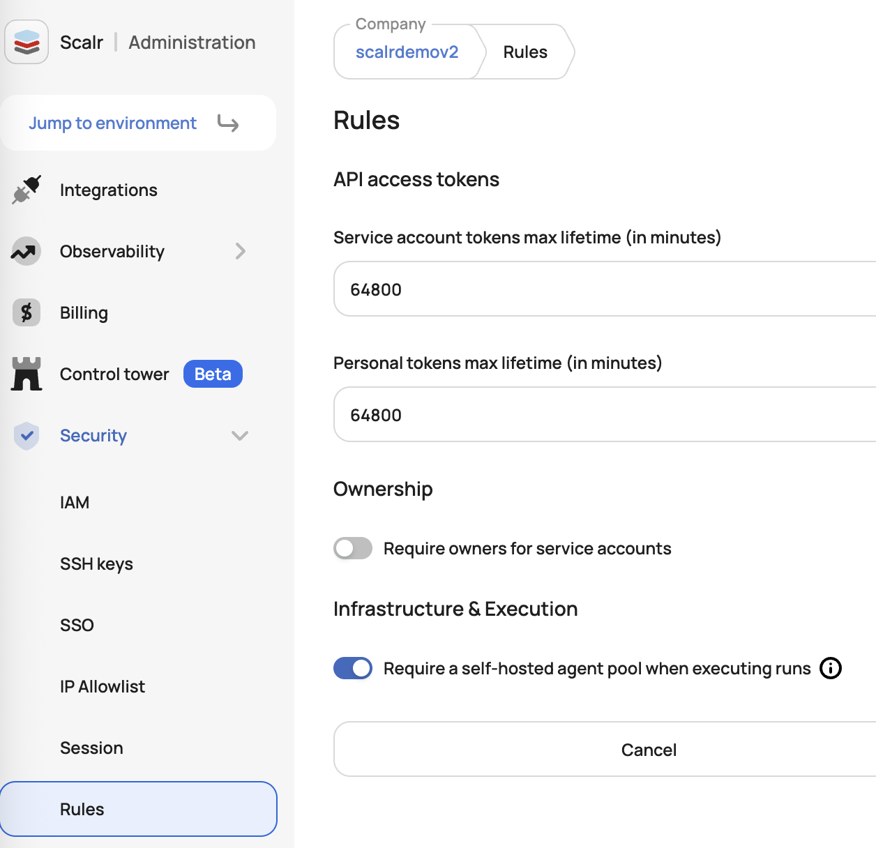 Whether you want to use an agent to execute runs in your own network or use a private VCS provider with scalr.io without opening it to the internet, agent pools give you the extra layer of security and control to meet your requirements.
