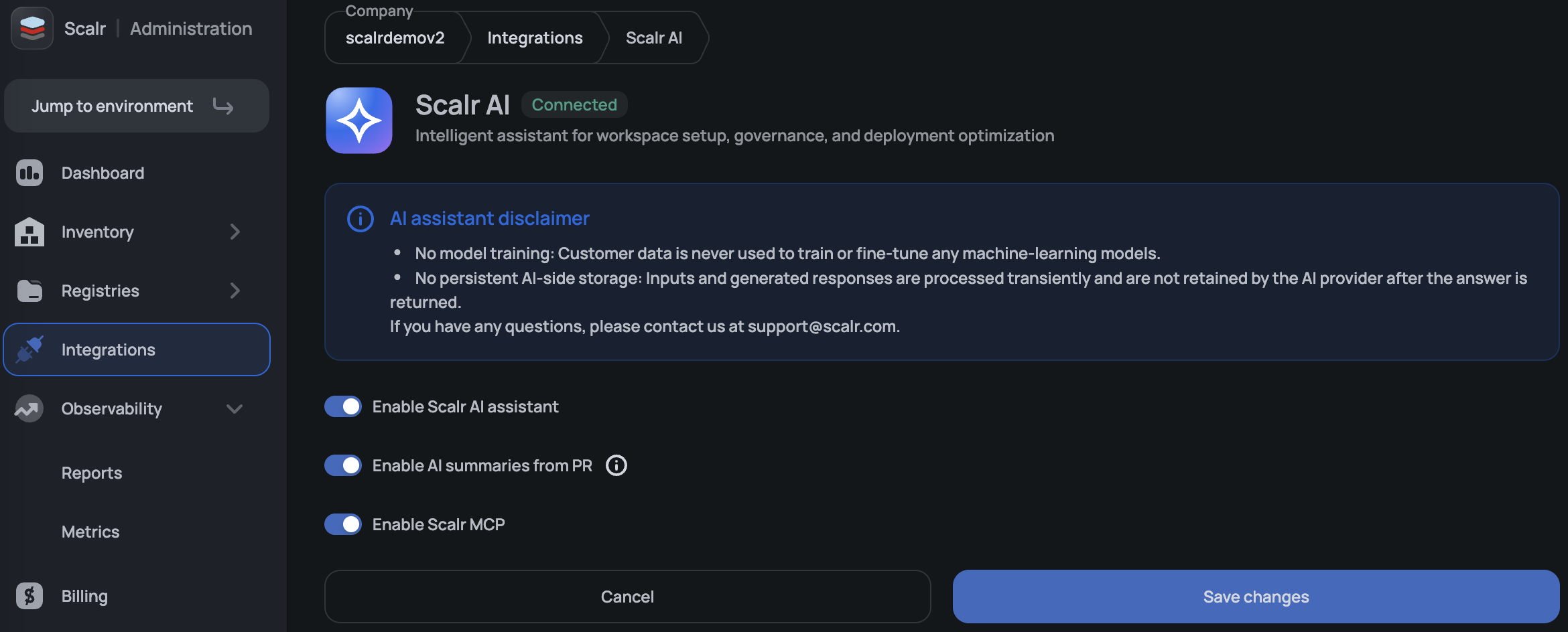 - Toggle on Enable Scalr MCP