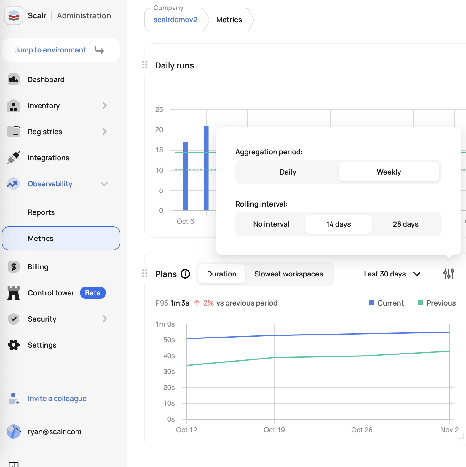 - Plan duration trends (7, 30, and 90-day views)
