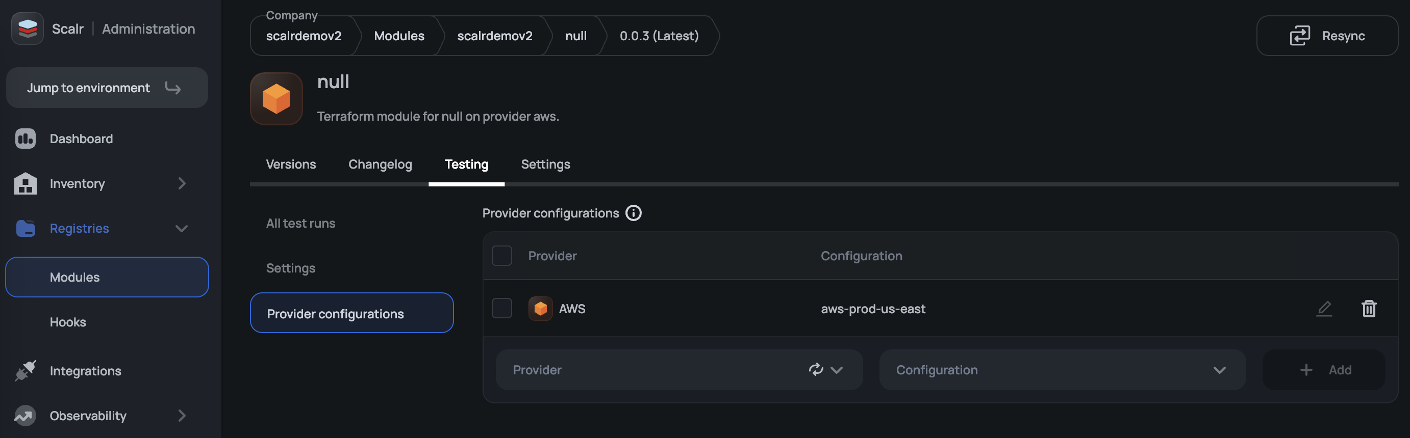 NoteThe "Use on apply-only" flag on a provider configuration does not affect test runs. Provider configurations linked to module tests are always injected regardless of this setting.
