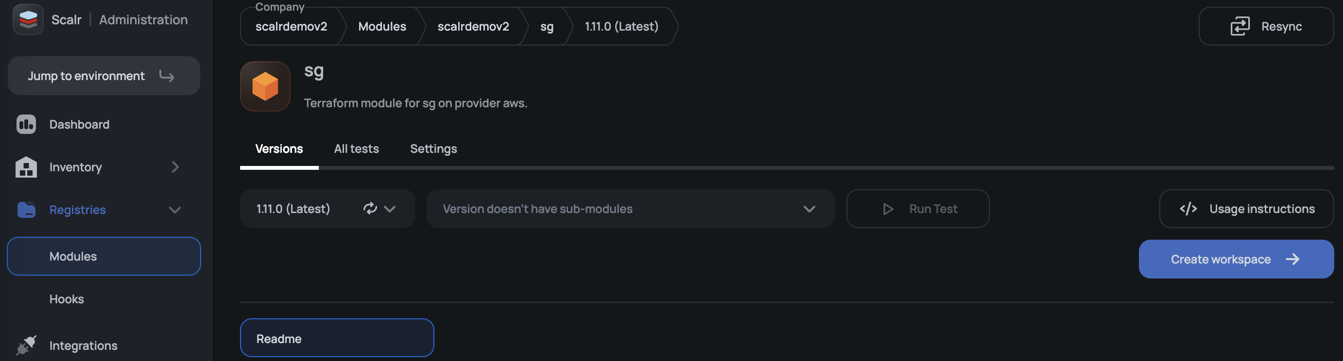 - Library module - Boilerplate code with the internal source reference that can be used to call the module from any Terraform or OpenTofu configuration in a Scalr environment.