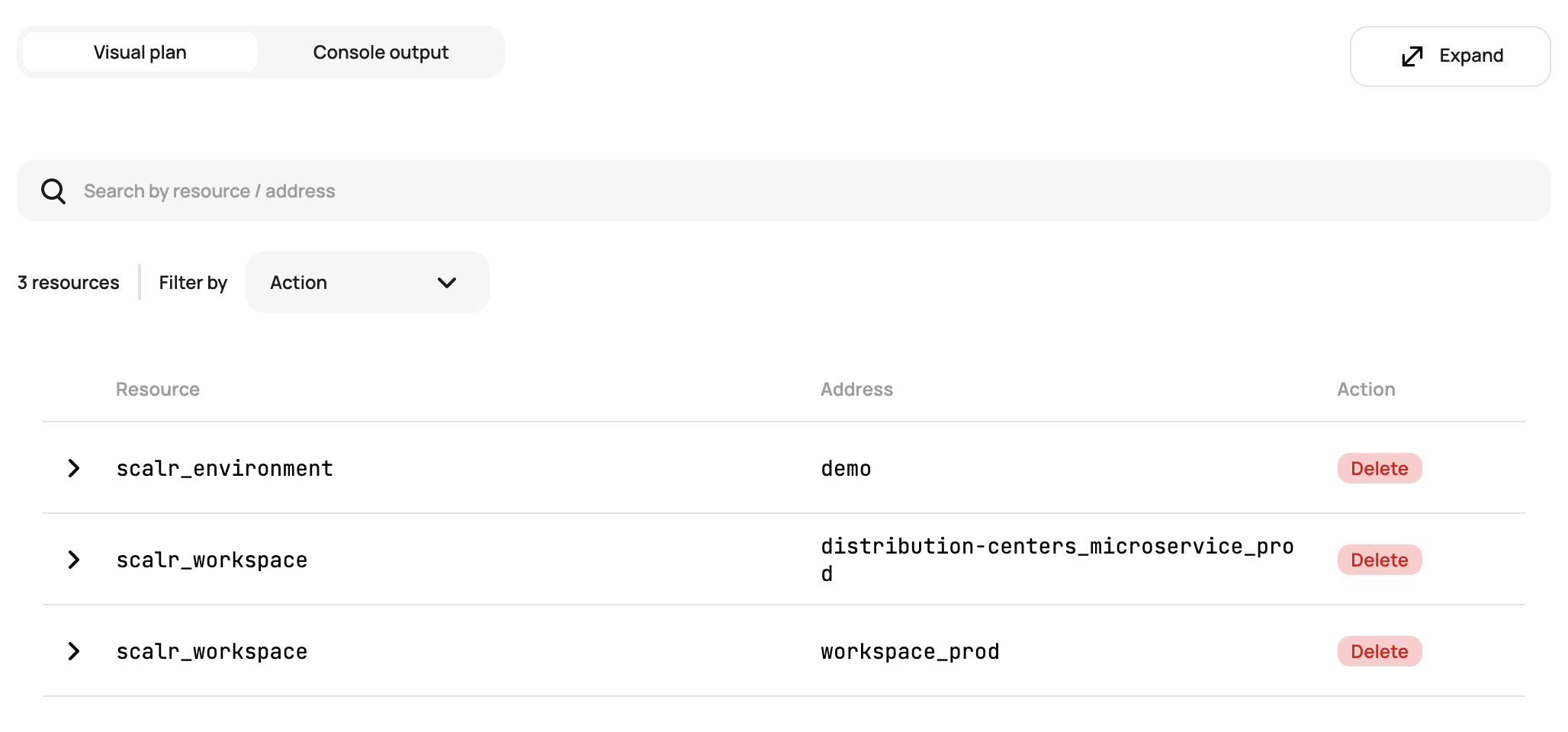 The output of a plan can be displayed in two ways: standard console output or visual plan output.